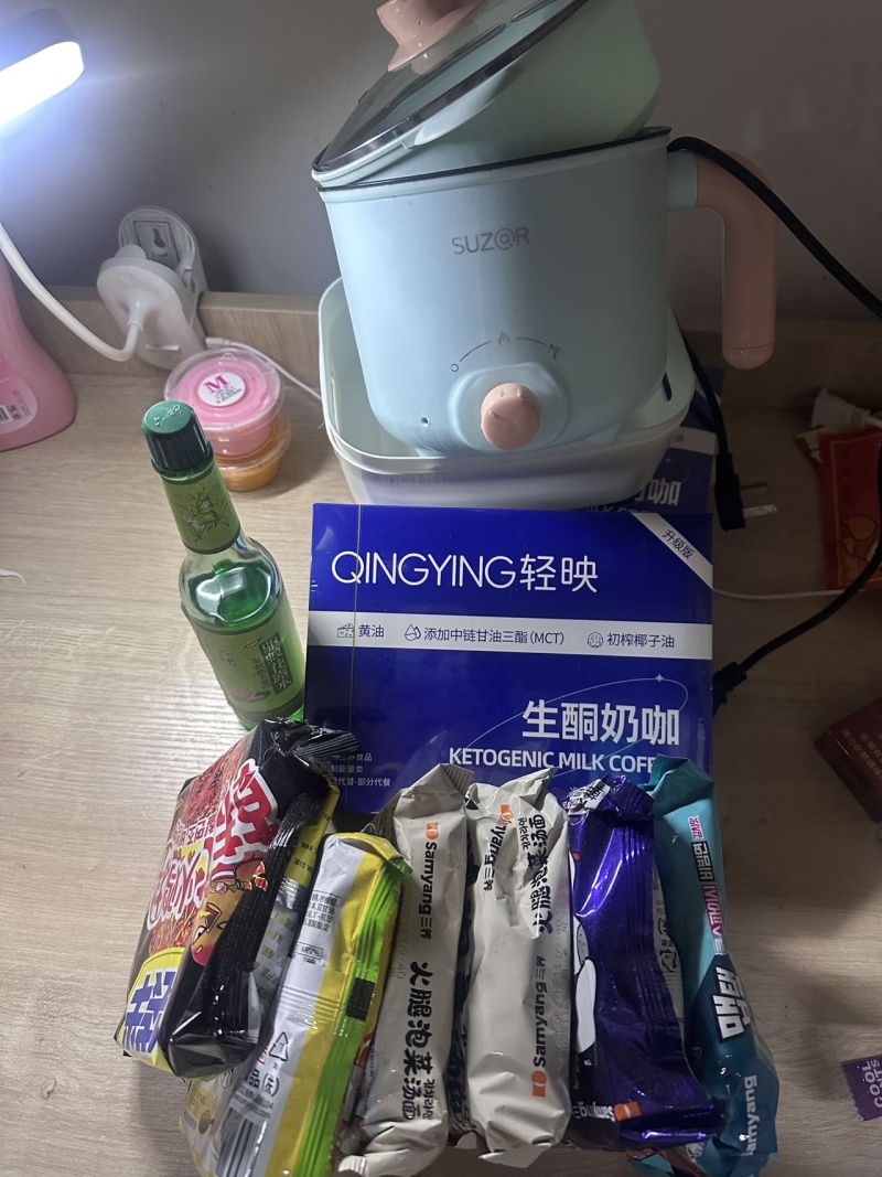 20块钱锅送泡面两盒奶咖花露水还有两个收纳篮子